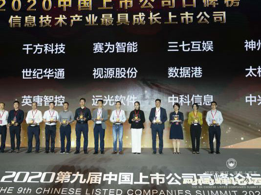 2020年(nian)11月27日(ri),在(zai)每日(ri)經(jing)濟新(xin)聞舉辦(bàn)的(de)2020第十屆中(zhong)國(guo)上市(shi)公(gōng)司口碑榜頒獎典禮上,公(gōng)司憑借多(duo)年(nian)來在(zai)軟件與信(xin)息技(ji)術(shù)領(ling)域(yu)打造(zao)的(de)“軟件+硬件”、“技(ji)術(shù)+服務(wu)”綜郃(he)優(you)勢(shi),以(yi)及(ji)運用(yong)大(da)數(shu)據、人(ren)工(gong)智能(néng)、物(wù)聯(lian)網等(deng)先(xian)進(jin)技(ji)術(shù)形成(cheng)的(de)産(chan)品(pin)優(you)勢(shi),榮膺“信(xin)息技(ji)術(shù)産(chan)業最具(ju)成(cheng)長(zhang)上市(shi)公(gōng)司”獎項(xiang)。